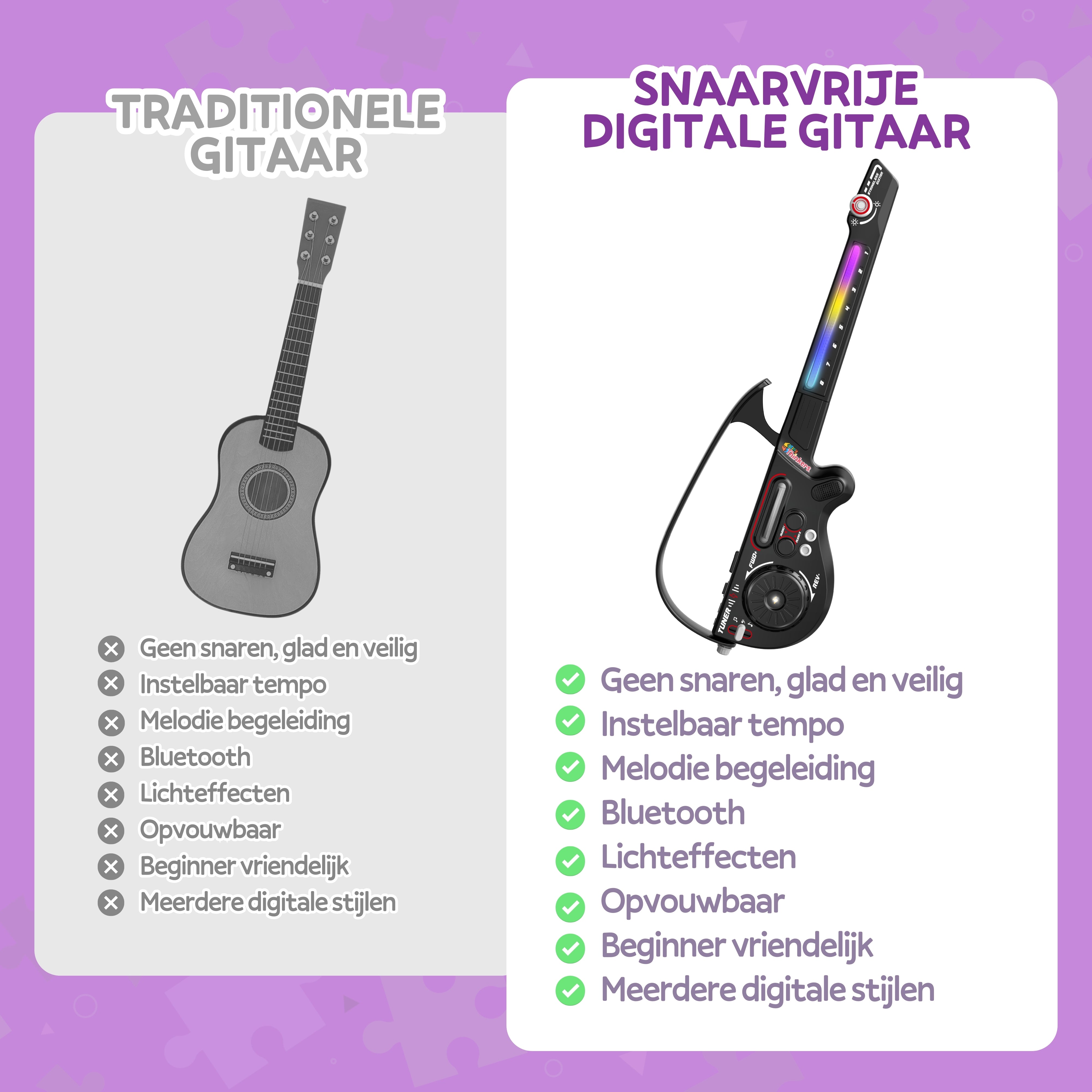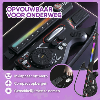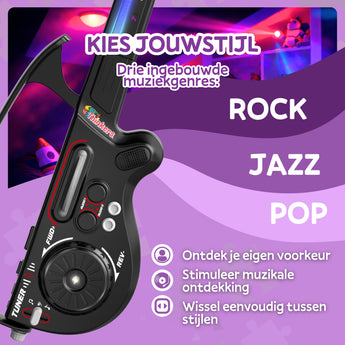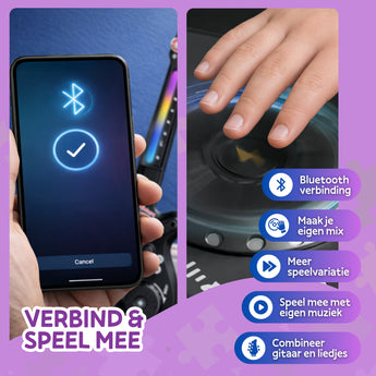 Sisältää oppikirjan, ladattava, DJ-miksaustoiminto, Bluetooth 5.0 -yhteys, interaktiiviset valopainikkeet ja automaattiset rytmit yhdessä! Tämä sähkökitara lapsellesi on se musiikkilelu, jolla lapset rakentavat omia minikonserttejaan ja saavat heti aikaan “aito” rytmin.