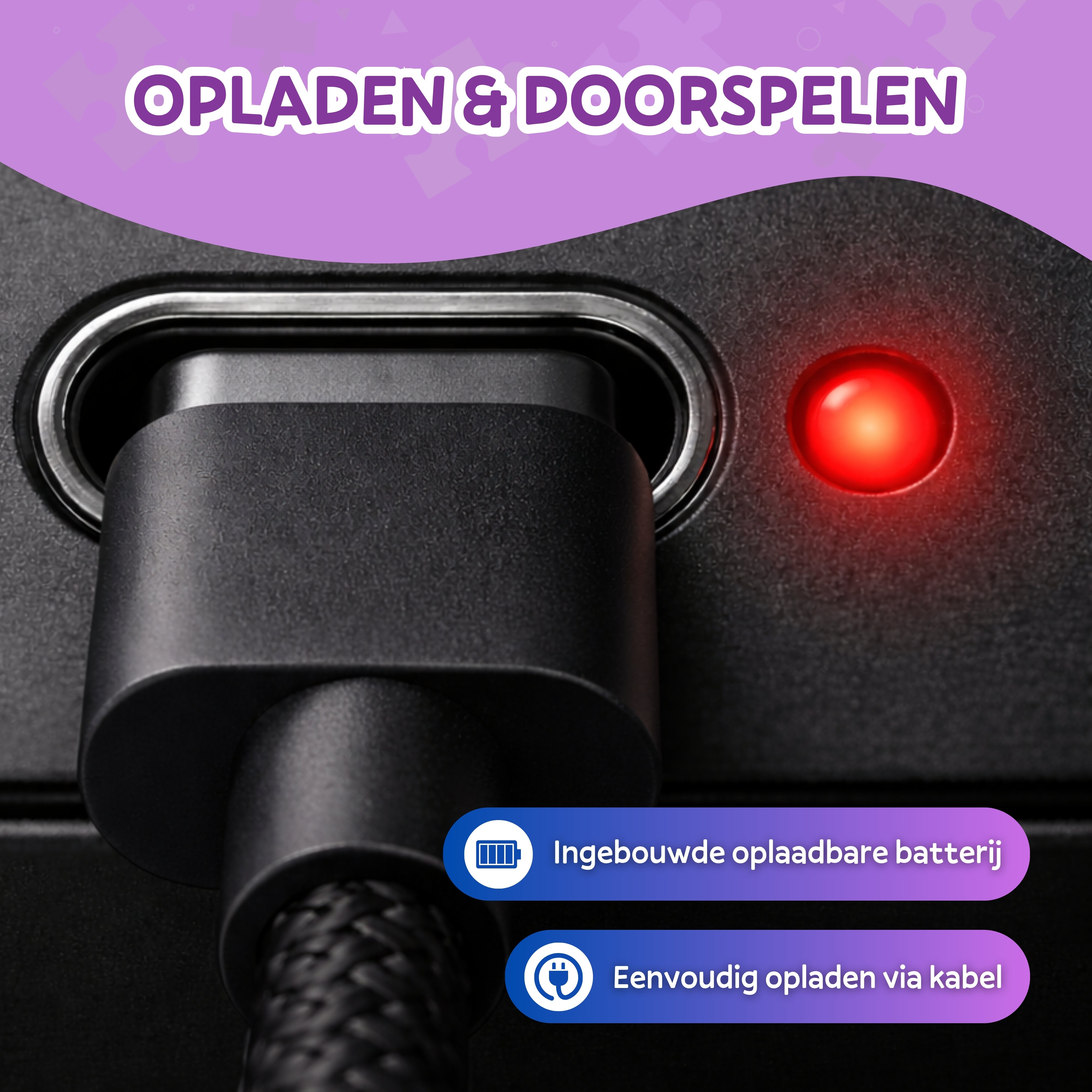 Valmistettu kestävästä ABS-muovista pyöristetyillä muodoilla. Kevyt, mukava pitää kädessä ja kestää innokasta käyttöä. Lataus USB-C:llä on helppoa ja akun kesto riittää moniin leikkisessioihin.